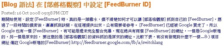 【FeedBurner】是個很好用的工具,可以幫我們自動通知讀者有最新的文章發表了,但我們又希望讀者可以上我們的部落格來閱讀文章。如果【FeedBurner】摘文太長的話,有時甚至會將整篇文章摘錄下來,這時後收到摘文的讀者可能早就讀完了文章,就不會想要在去我的部落格看文章了。